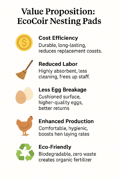 | Coco Coir Nesting Pad | Ready-to-use poultry bedding pad | Reduces egg breakage & labor costs; 92% ROI; hygienic & eco-friendly |